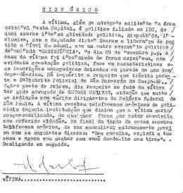 A vítima, alem de advogado militante na área criminal nesta Capital, e político filiado ao PDT, do qual exerce intensa atividade política, disputando, inclusive, com o deputado Airton Soares a liderança do partido a nível Estadual, com um outro movimento político denominado "RESISTÊNCIA". No dia 05 de Novembro p.p., a casa da vítima foi incendiada de forma criminosa, com evidente conotação política, face as caraterísticas e as inscrições ameaçadoras deixadas na parede de uma das dependências. Ha inquérito a respeito que tramita perante o 2º Distrito Policial de São Bernardo do Campo/SP. Outro ponto de relevo, diz respeito ao fato da vítima ter sido advogado de GEORGES SELLINAS, cidadão que muito se indispôs com vários dirigentes da Polícia Federal de São Paulo. A vítima recebeu telefonemas anônimos de policiais daquela instituição que diziam que a vítima seria responsabilizada, de qualquer forma por estar envolvida com referido cidadão, no final da tarde de ontem recebeu telefonema anônimo, de voz masculina, extremamente precisa com os seguintes dizeres: "Seu canalha, explodi a tua casa e agora vou acabar com você dando-lhe uns tiros" Desligando em seguida.